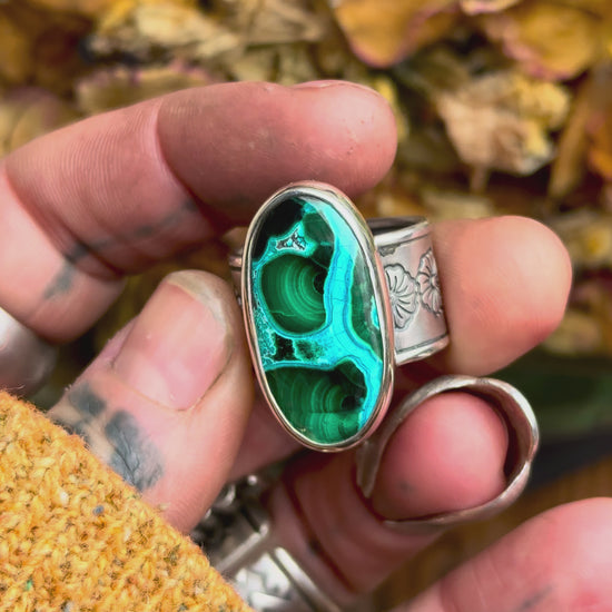 MELTING-POT - Bague T56,5 en Argent & Chrysocolle Malachite